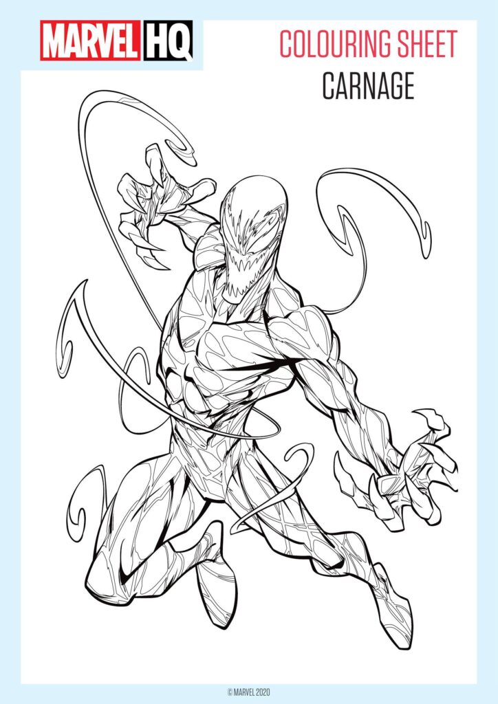 Download de leukste Carnage kleurplaten om te printen en geniet van creatief kleurplezier voor kinderen en volwassenen!