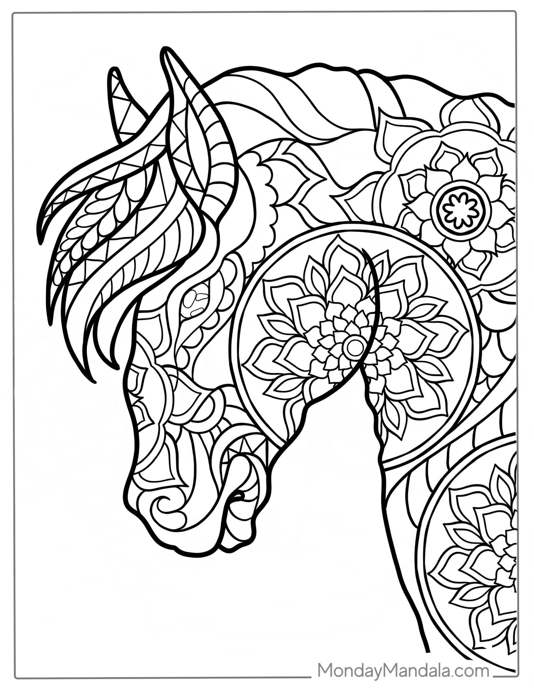 Mandala paarden kleurplaten voor volwassenen zijn complexere kleurplaten die ontworpen zijn voor ontspanning en creativiteit, vaak met gedetailleerde patronen van paarden.